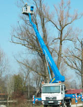 Die Hebebühnenarbeit ist da angebracht, wo die Seilklettertechnik an Effizienz verliert. Fällungen an öffentlichen Verkehrswegen, Arbeiten bei nasser Witterung sind Gründe dafür. Oft ist es auch sinnvoll, beide Arbeitsmethoden zum Beispiel für Alleearbeiten zu kombinieren. Welche Technik letztendlich die geeignete ist, wird im Vorfeld geklärt und ist ein wesentlicher Bestandteil bei der Gefahrenermittlung.