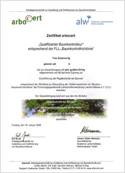 Unser Betrieb ist nach den neuen Richtlinien seit Mai 2005 zur Baumkontrolle zertifiziert.